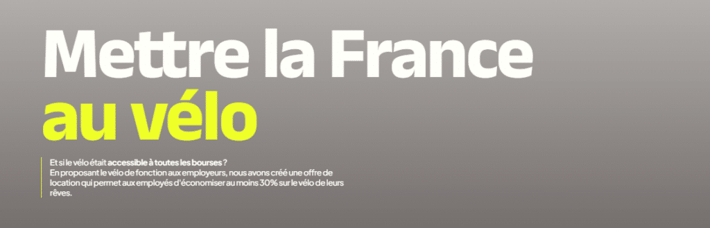 – Pour les salariés : Accédez à un vélo haut de gamme pour vos trajets professionnels et personnels, entre 30 et 65% moins cher, tous services et équipements compris